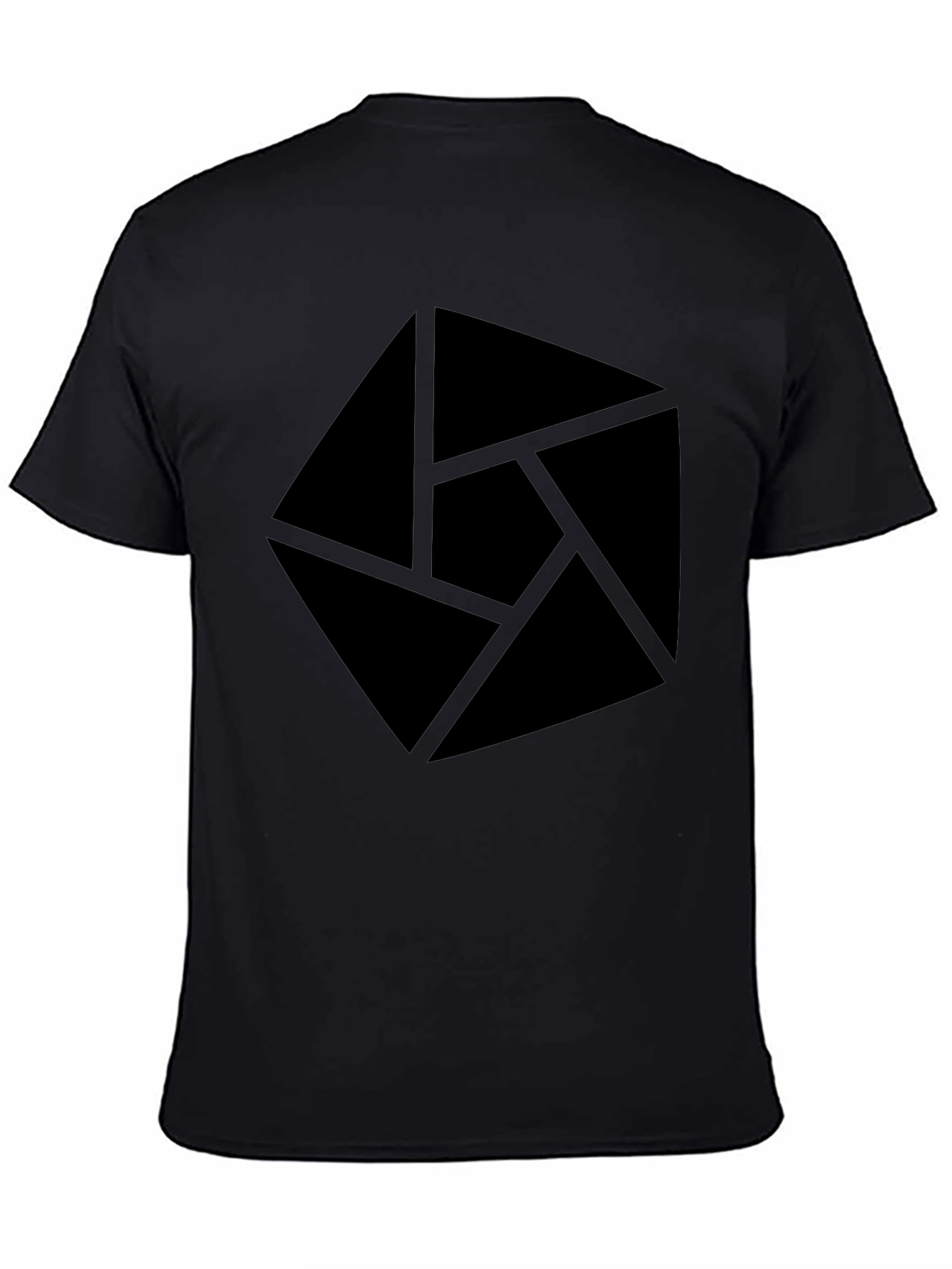Elevate your casual style with this sleek, black t-shirt featuring a bold, geometric print. The unique design consists of abstract, interconnected shapes forming a modern, eye-catching pattern. Crafted from a soft, comfortable fabric, this tee is perfect for everyday wear. Its minimalist aesthetic allows for effortless pairing with jeans, chinos, or shorts. Ideal for those who appreciate contemporary art and unique fashion statements, this shirt adds a touch of sophistication to any outfit. Whether you're heading to a casual gathering or simply running errands, this graphic tee is a versatile and stylish choice. Make a statement without saying a word!