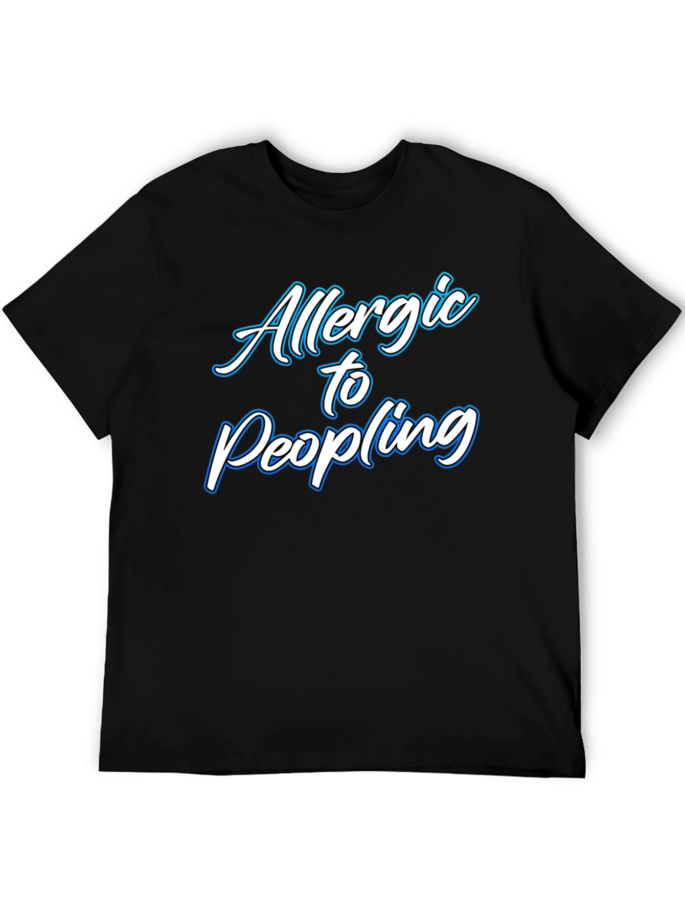 Express your introverted side with this witty "Allergic to People" black t-shirt. Made from a comfortable fabric, this casual tee features a playful text design in a stylish font with a bright outline. Its relaxed fit and soft material make it perfect for lounging at home, running errands, or a casual outing with close friends. Show the world your aversion to crowded situations with this fun and relatable statement piece. Get ready to turn heads and spark conversations while keeping your personal space intact!
