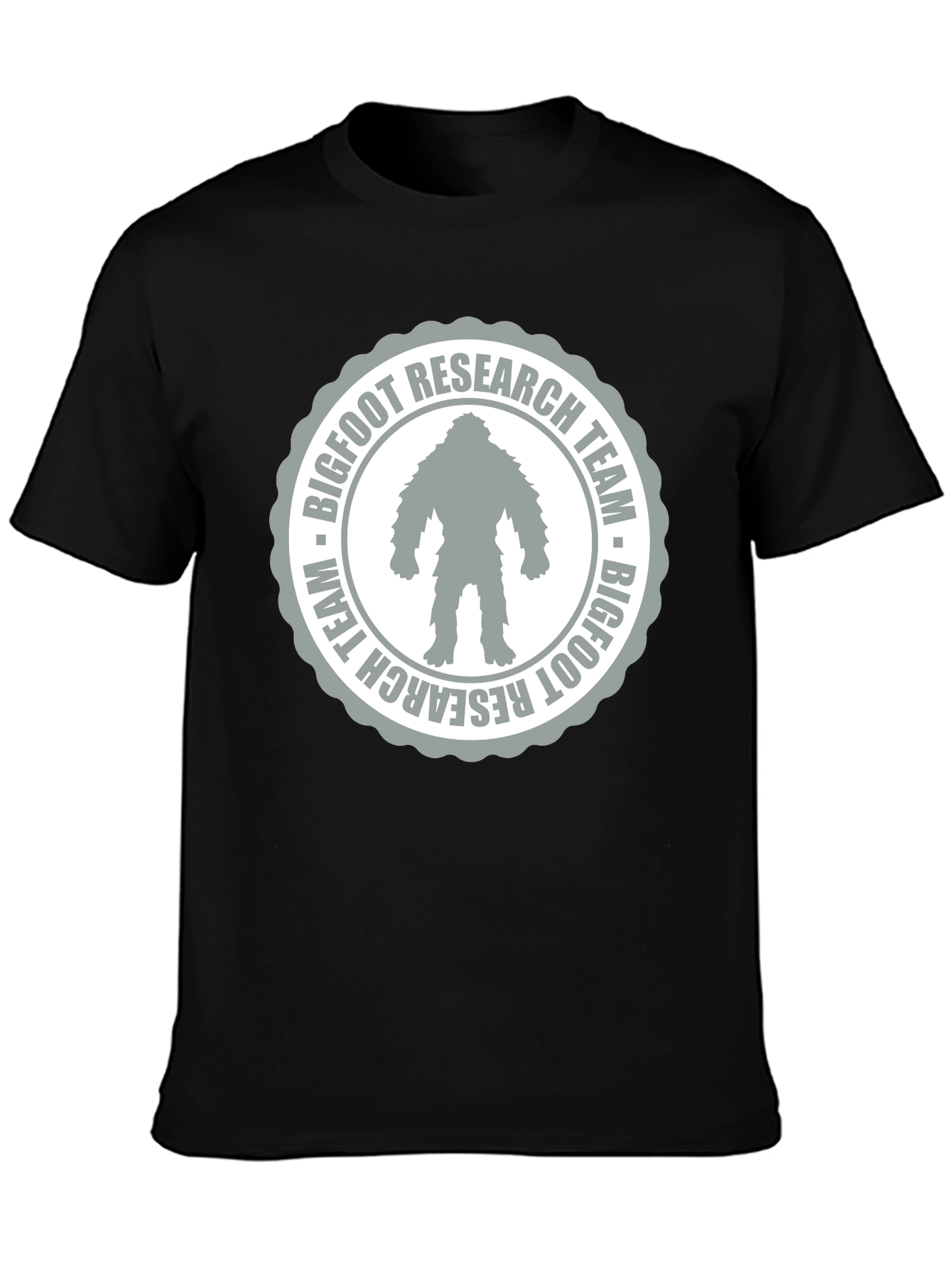 Embrace your love for the mythical with this Bigfoot Research Team T-shirt. This unique shirt features a classic crew neck and a comfortable fit, perfect for everyday wear. The bold design showcases a circular graphic with the words "Bigfoot Research Team" surrounding a silhouette of the legendary creature. Whether you're a seasoned cryptid hunter or simply a believer, this tee is sure to spark conversations and showcase your adventurous spirit. Made from soft, breathable fabric, this shirt offers both style and comfort. Add this conversation-starting piece to your wardrobe today!
