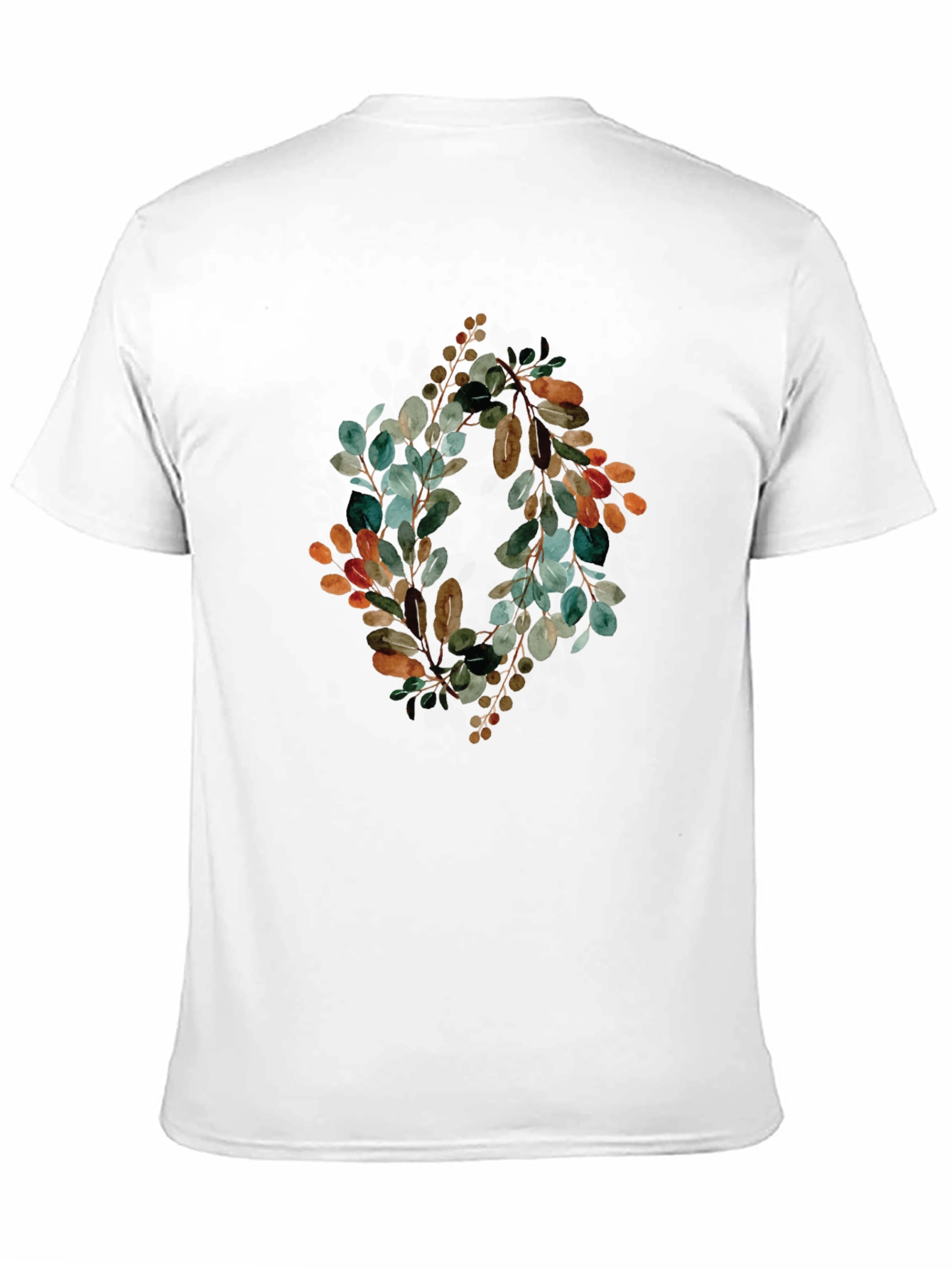 Elevate your casual style with this stylish men's black T-shirt. Featuring a unique botanical wreath graphic, this tee adds a touch of nature-inspired elegance to your wardrobe. The intricate design showcases a blend of green, brown, and orange leaves, creating an eye-catching focal point. Made from comfortable, breathable fabric, this T-shirt is perfect for everyday wear. Pair it with jeans or chinos for a relaxed yet fashionable look. Ideal for nature lovers and those who appreciate distinctive graphic designs. Upgrade your T-shirt collection with this must-have piece!
