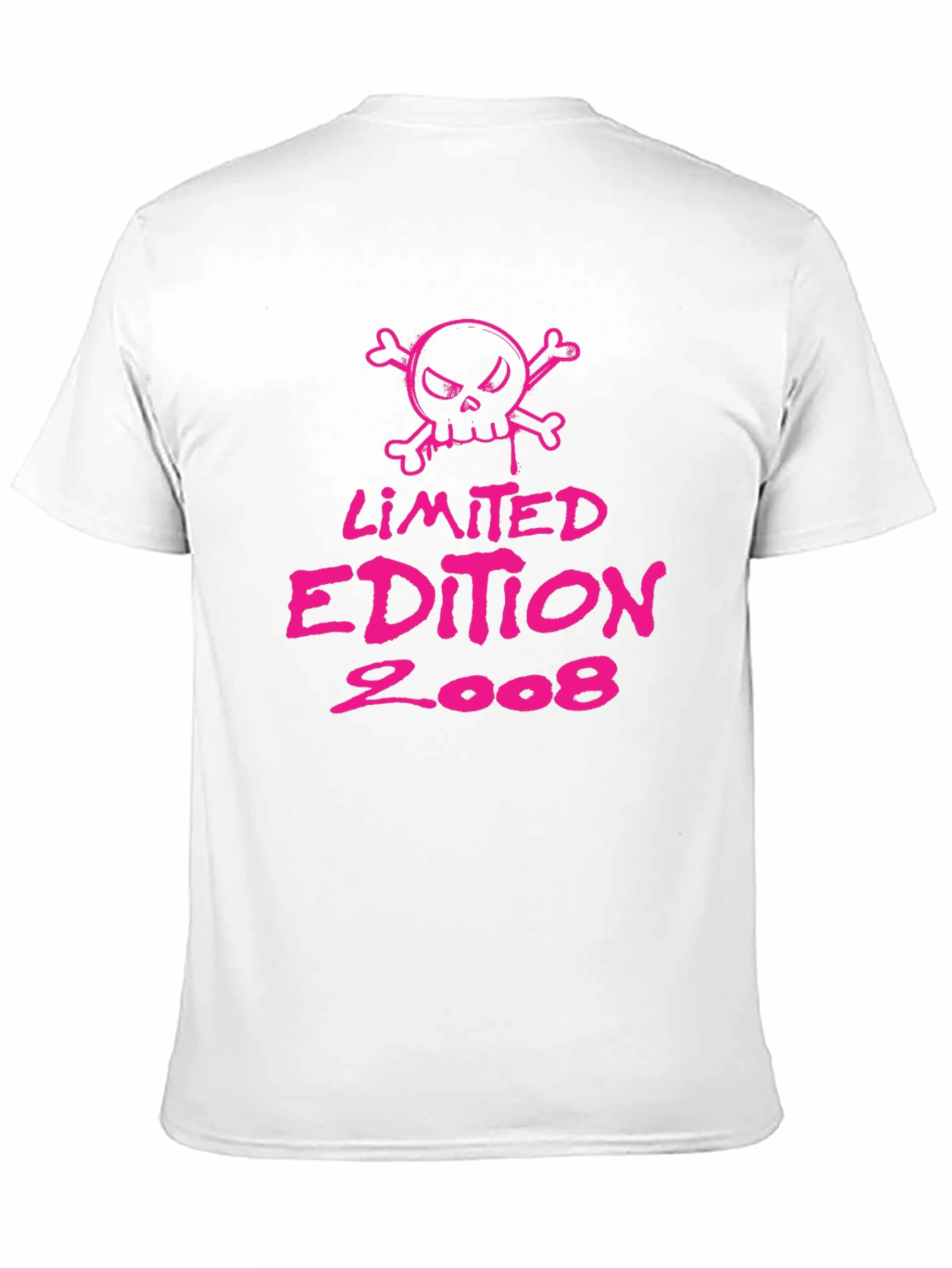 Show off your edgy style with this Limited Edition 2008 graphic t-shirt! This eye-catching tee features a bold pink skull and crossbones design above the text "LIMITED EDITION 2008". The design is printed on a classic black crew neck t-shirt. Constructed from what appears to be soft, breathable cotton, this tee offers both comfort and durability. Perfect for casual outings, concerts, or just expressing your unique personality, this limited edition t-shirt is a must-have for any wardrobe.