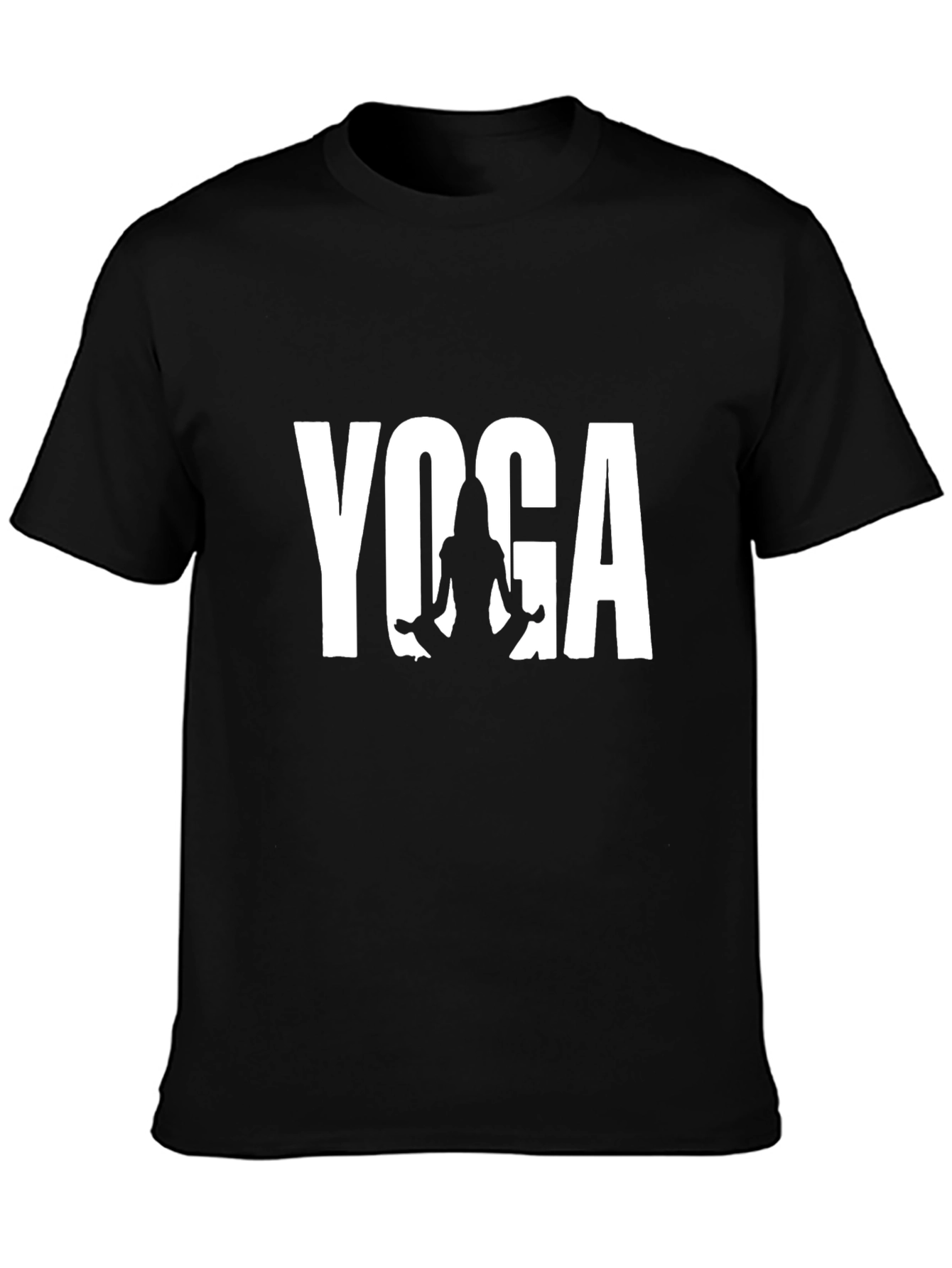 This stylish black t-shirt features a bold, white "YOGA" design with a silhouette of a person in a classic meditative pose cleverly integrated into the letter "O." Crafted from comfortable, breathable fabric, this tee is perfect for yoga enthusiasts and anyone seeking a relaxed, spiritual vibe. Whether you're hitting the studio, lounging at home, or running errands, this shirt will keep you feeling zen and looking great. Show off your love for yoga with this unique and eye-catching t-shirt. It's a great conversation starter and a comfortable way to express your passion for mindful living. Perfect fit for both men and women.